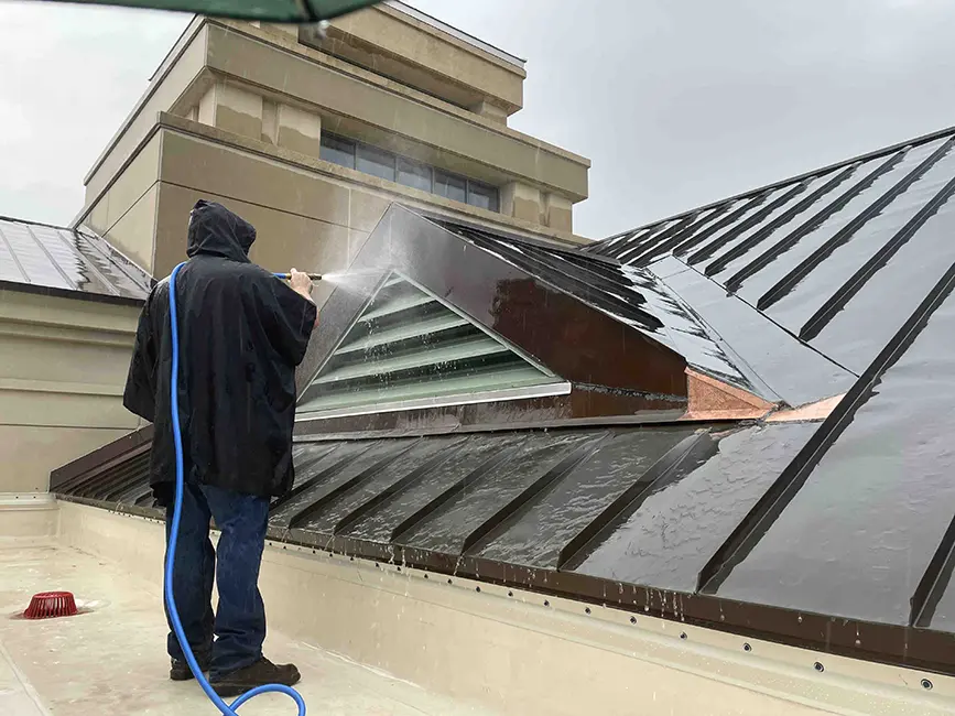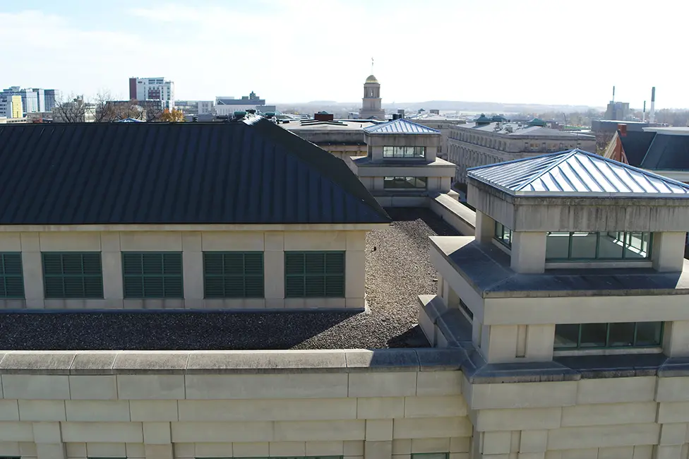The University of Iowa’s John Pappajohn Business Building is a 187,000 SF building constructed in 1993, located centrally on campus and housing the Tippie College of Business, Pappajohn Entrepreneurial Center and Small Business Center. The University worked with an outside firm to conduct a study to address roof, wall, and window leaks. The study identified multiple needs, including precast concrete waterproofing, roofing repair and replacement, and joint sealant repairs.