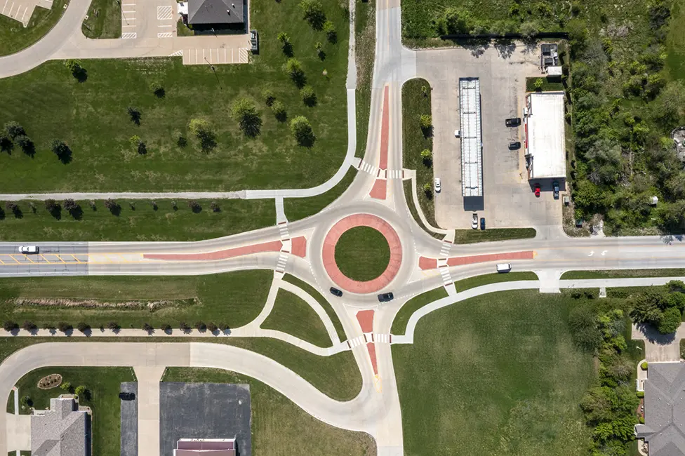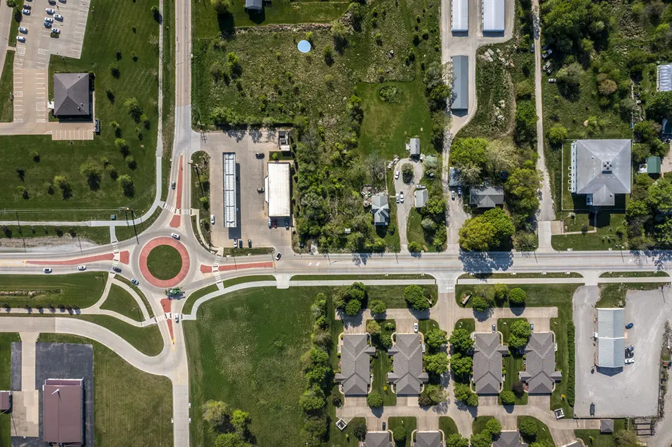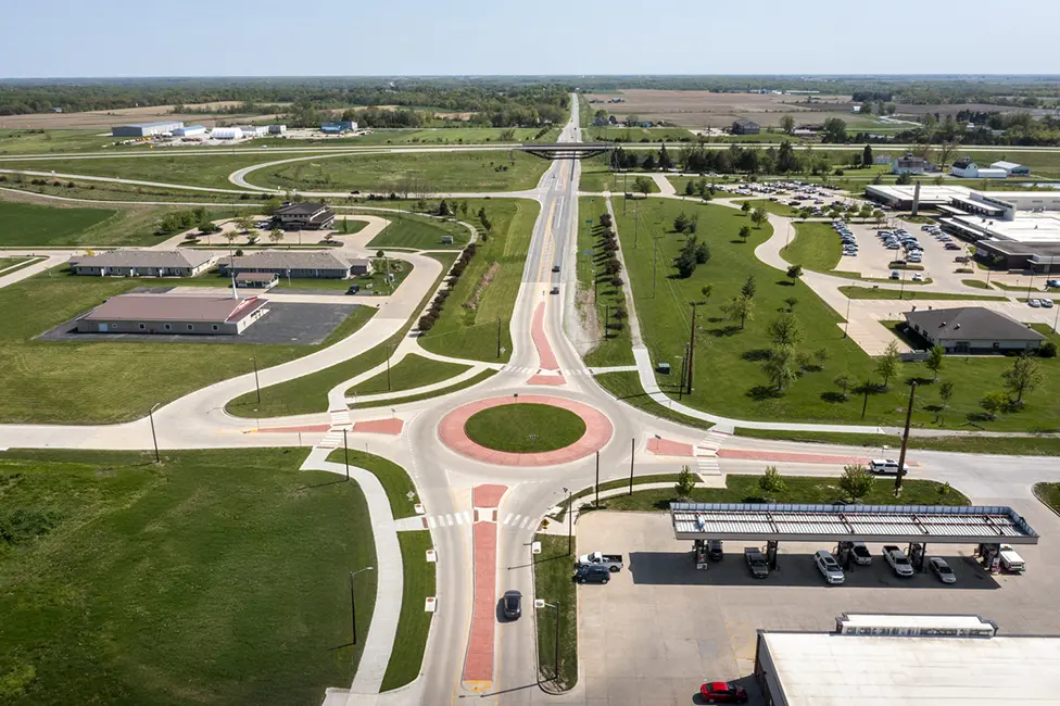 The project addressed congestion, outdated roadway features, and the need for safer pedestrian and vehicle movement. Improvements included upgraded intersection geometry, shared-use path design, storm sewer enhancements, and full roadway reconstruction. To provide safer cross-traffic, the intersection of Highway 1 and Libertyville Road was converted from a two-way stop to a one-lane roundabout. Shive-Hattery also assisted the City in administering multiple funding sources, including SWAP, TAP, TSIP, and Iowa DOT Primary Road funds.