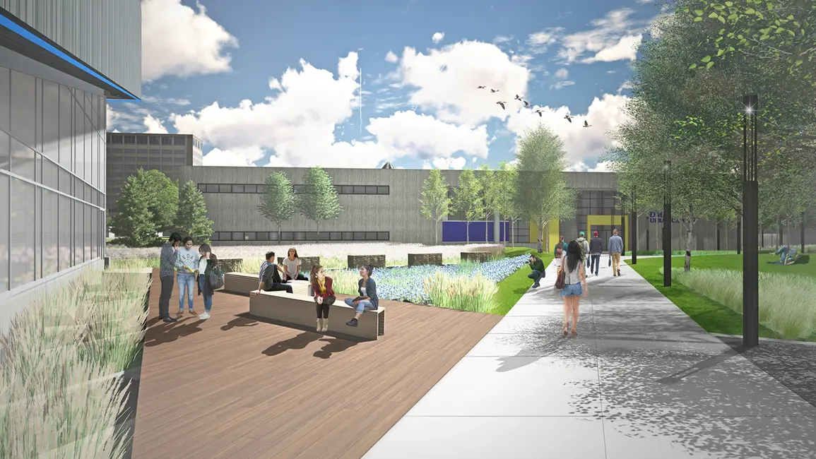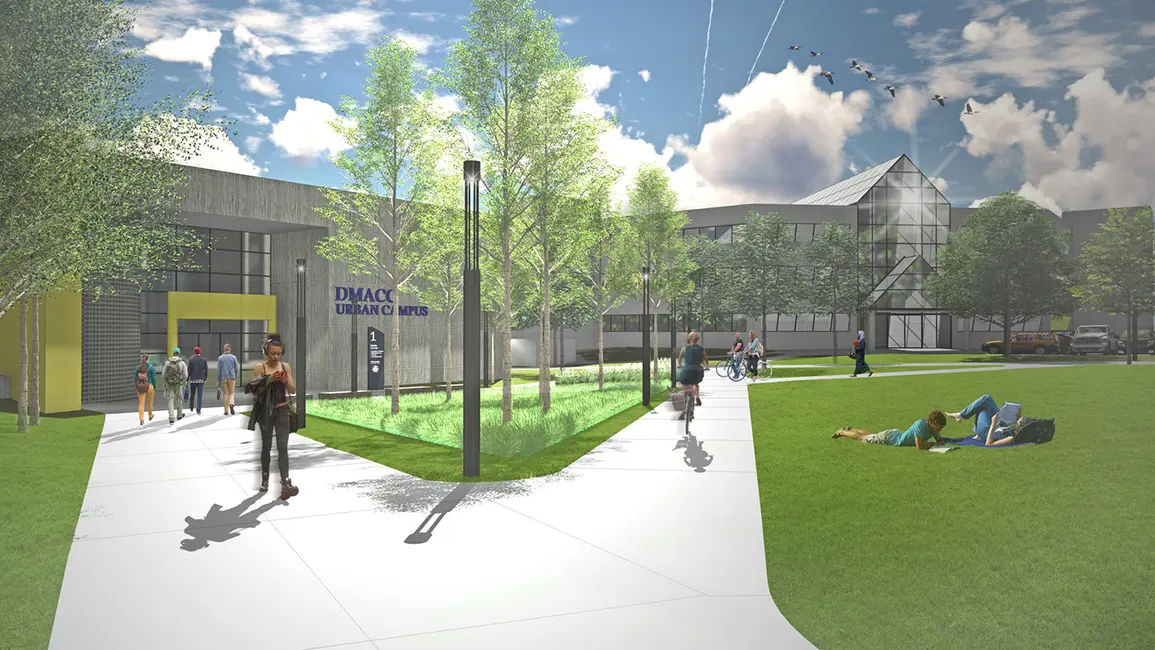 The DMACC Urban Campus is the most culturally diverse campus of higher education in the State of Iowa. In an effort to enhance both campus identity, and the surrounding community, the design vision was focused on reinforcing DMACC commitment to its rich and diverse student body. Connectivity, Collaboration, Inclusion, and Building Community became the overarching vision for the design concept. The “Why” focused on the expression and enhancement of Urban Campus Identity, as its own, unique, localized level of community, while at the same time supporting the overall educational goals of DMACC as an institution of higher learning.