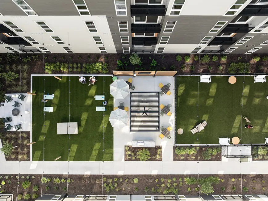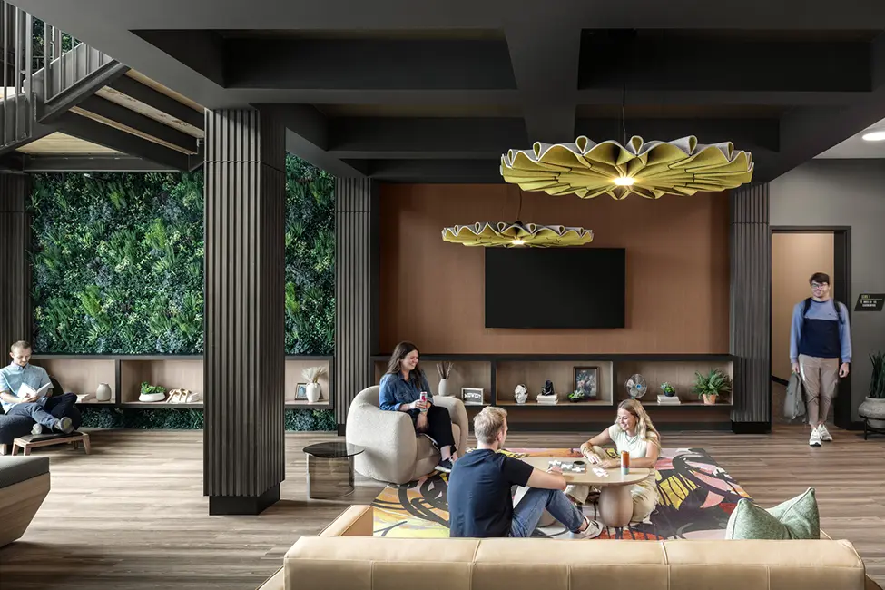 Replay was designed with flexibility and differentiation in mind. The 291-unit, 648-bed complex offers a mix of floor plans. It includes amenities like a pool, gaming areas, outdoor kitchens, hammocks, a dog park, and sustainable landscaping. The result is housing that complements a student lifestyle that feels elevated, social, and residential.