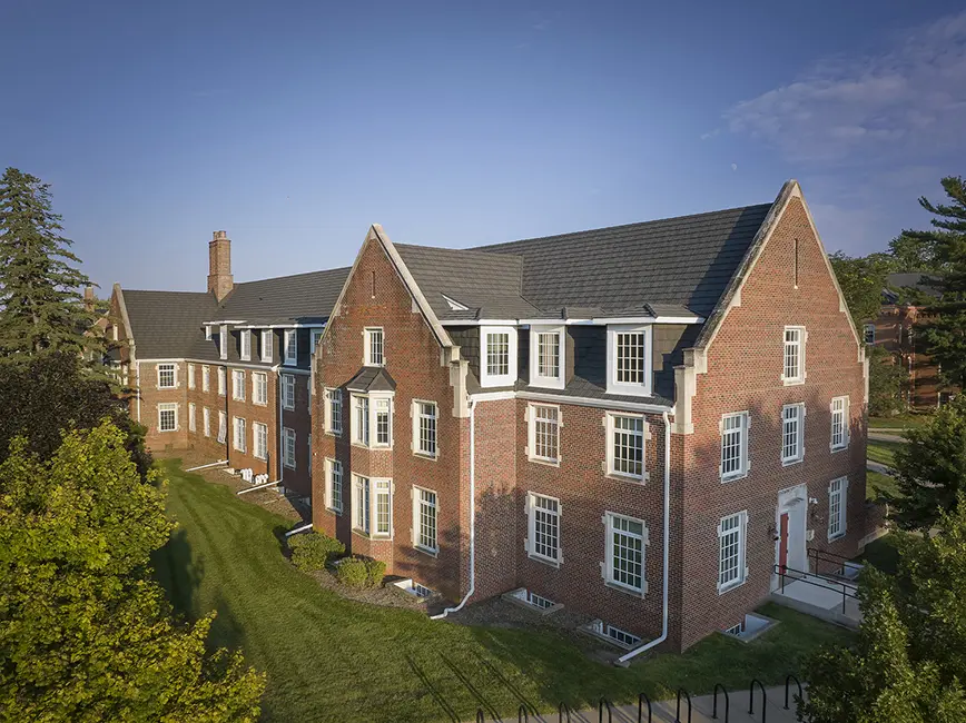 Kresge Hall is one of the most recognizable buildings on Simpson College’s campus, a post‑World War II residence hall whose slate roof had quietly served the college for more than 80 years. While the roof’s performance had significantly declined, its appearance remained an essential part of the campus identity. Simpson College needed a solution that addressed aging materials, deteriorating conditions, and the presence of asbestos insulation beneath the original roof assembly, all while preserving the visual continuity that makes the campus feel cohesive and iconic.