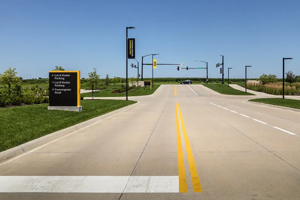 This facility required a large number of ADA parking spaces with major considerations for accessible paths and slopes throughout the complex. Visiting a large complex like this can be stressful so the goal was to minimize this stress by providing an easy to navigate parking lot and sidewalk paths. The community welcomed the UIHC North Liberty campus in April 2025 with a community open house.